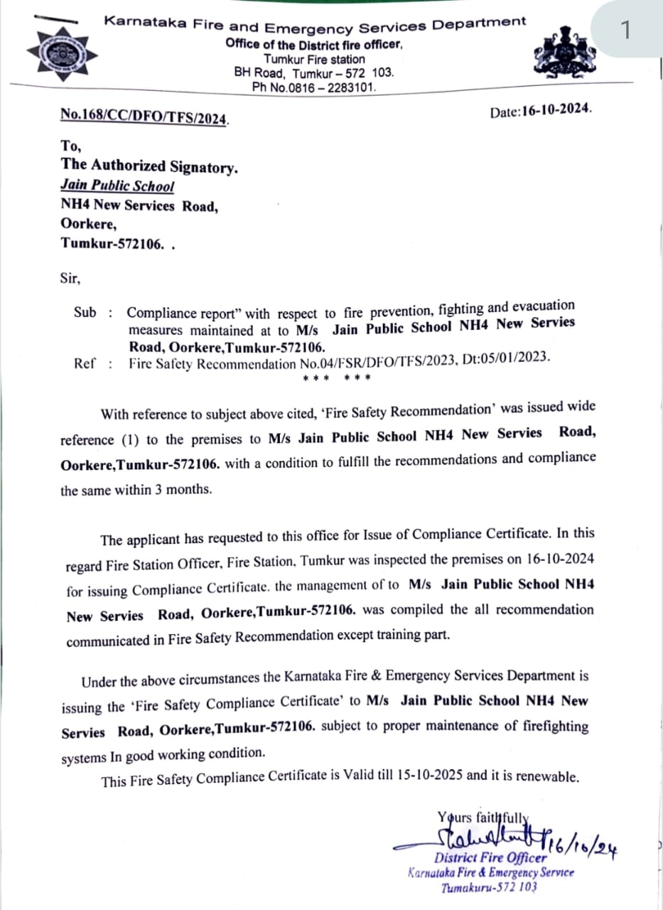 | 6 | Copy of Valid Fire Safety Certificate issued by the Competent Authority | Fire Safety Certificate |